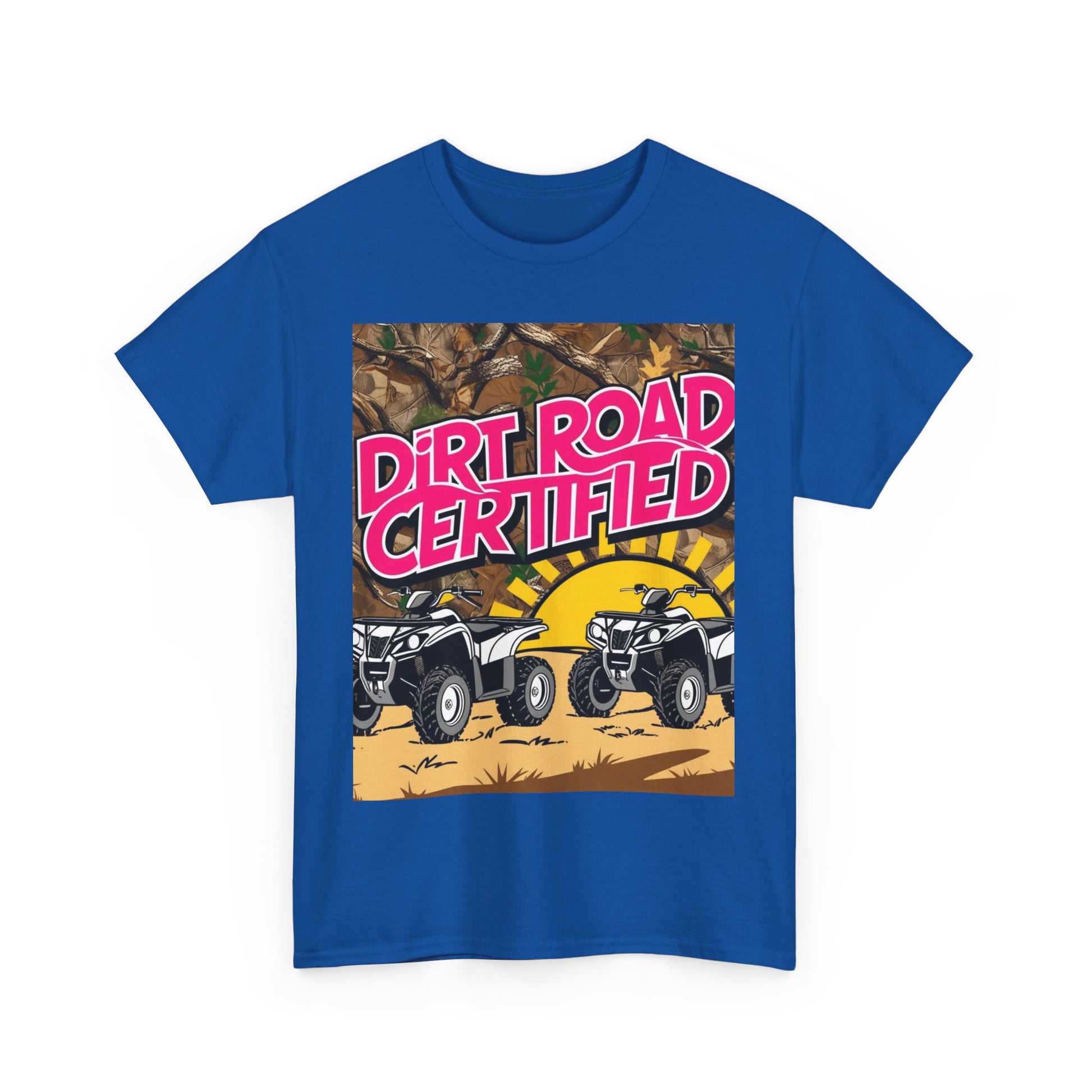Elevate your casual wardrobe with this vibrant Unisex Heavy Cotton Tee. Perfect for outdoor adventures or laid-back days, this shirt encapsulates a fun, energetic vibe with eye-catching graphics that shout 'Dirt Road Certified.' Made from high-quality cotton, its soft feel ensures all-day comfort, making it a great choice for everyday wear. Ideal for those who embrace an active lifestyle and love to express their personality, this tee is a must-have for outdoor enthusiasts, off-road lovers, and anyone who enjoys a carefree spirit. Celebrate occasions like summer gatherings, road trips, or even just lounging at home in style!